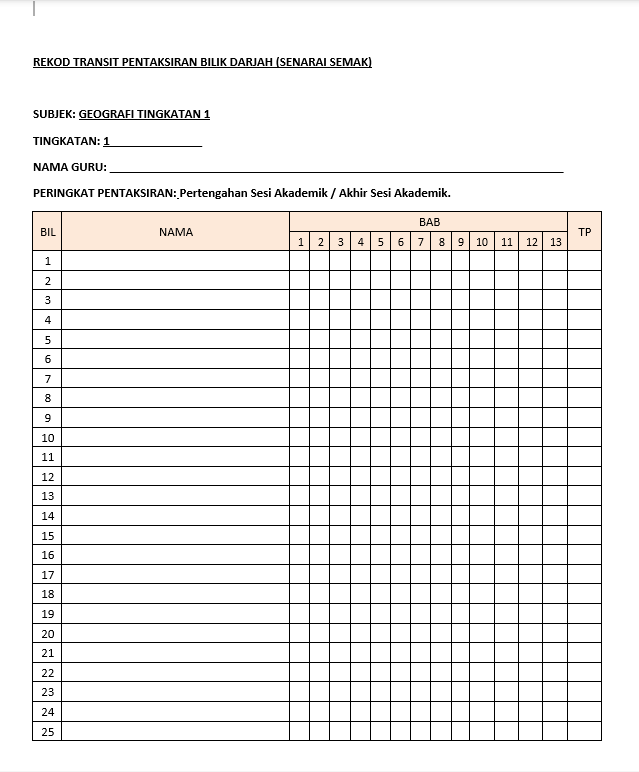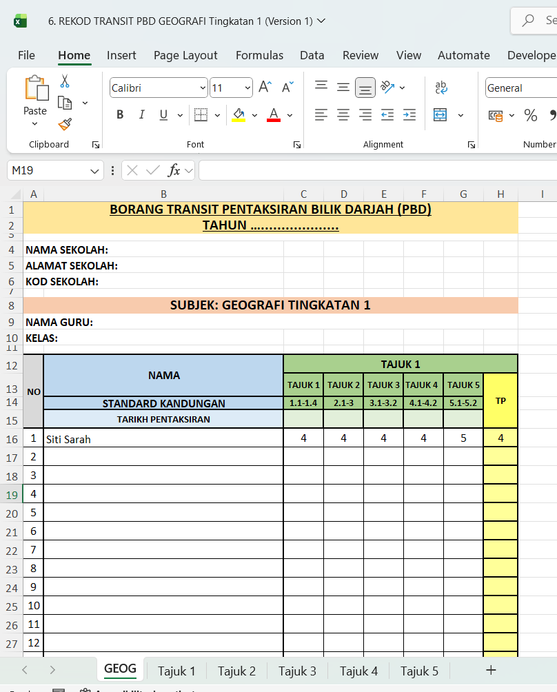 Borang Transit PBDBorang Transit PBD – GEOGRAFI Tingkatan 1