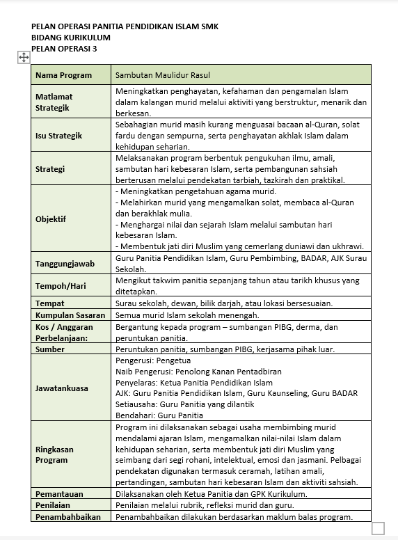 PELAN OPERASI – PANITIA PENDIDIKAN ISLAM