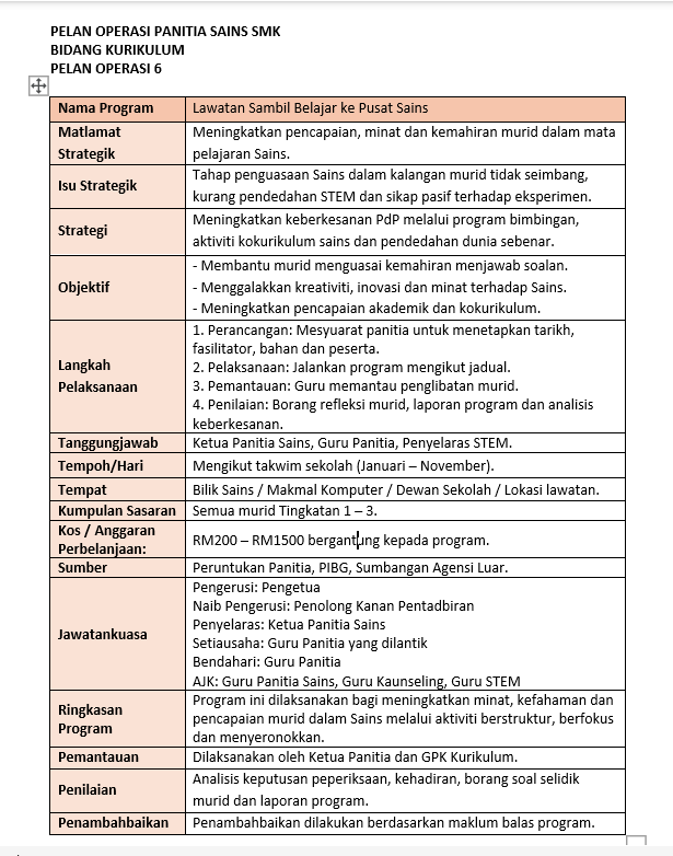 1. Setiap Unit / Panitia diberikan 10 pilihan Pelan Operasi.