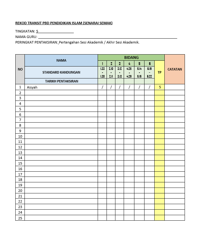 • PERCUMA – Muka Depan Borang Transit & Panduan Tahap Pencapaian (TP)