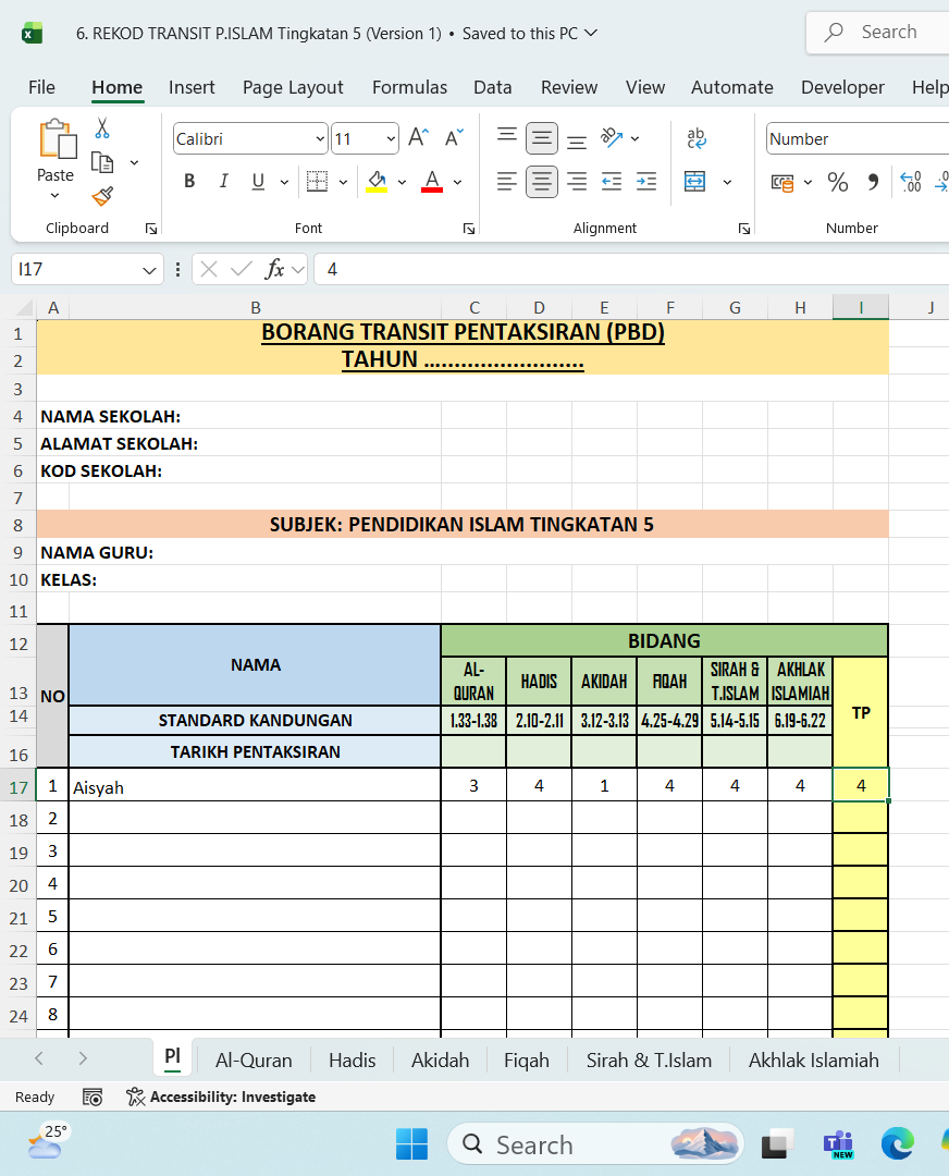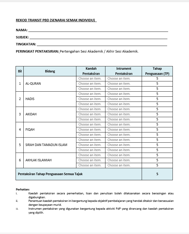 • PERCUMA – Borang Transit PBD / Borang Perkembangan Murid (3 Version)