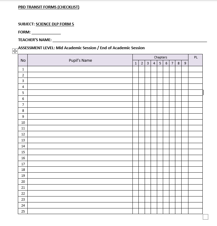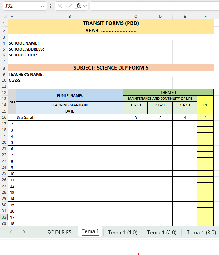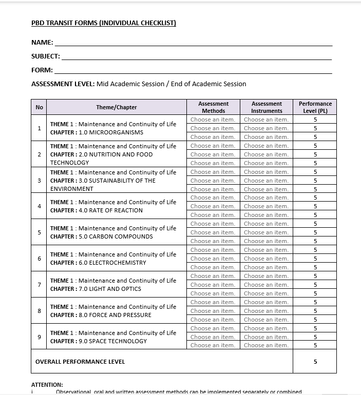 • PERCUMA – Borang Transit PBD / Borang Perkembangan Murid (3 Version)
